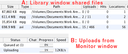 All files that are not coloured red in your Library window are being shared. So if you see them there, you know they are being shared. Birdy was refering to the columns to the right of the shared files ... if you look to the columns to the right, Hits shows how many times people have found them in searches, uploads shows how many successful or attempted uploads have occured.