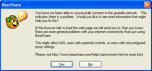 I'm out of ideas for the moment . Is there any way I can test if my computer can connect to the Gnutella network to see if its a problem with my computer or with Bearshare?