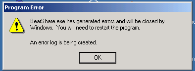 Any ideas AaronWalkhouse? I ran the BearStart utility. This problem has happened to me with all version 5 BearShares. The only version I've been able to run was version 6 which is obviously a different program design. I'm running Windows 2000 on VPC.