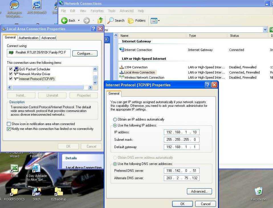 While I am by no means an expert, I suspect that my problem arises somehow from the wireless network I have. I did not set it up and dare not disconnect it (even if I knew how) as I would probably not be able to reconfigure it! I ran into a problem trying to set the port permissions in the Router screen because it asked me for my computer's IP address, in the sequence 192.168.1. ? . However, my network has been set to ""Obtain an IP Address automatically". However, typing 'ipconfig /all' in the command line reveals my network comprises: