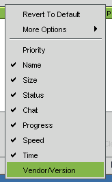 | Hmm well it sounds suspicious then. Many people (the wise ones) will only download files that are verified as being good on Bitzi. BTW you can search Bitzi for the file you're after & look at other terms the file is known under. That can help you search for them. If downlding videos, be wary of RAZA (Shareaza) users. Whilst they often have very good files, due to them connecting to more than one network & using most of their bandwidth on the other networks, they don't leave much left over for the gnutella network. They can be very difficult to connect to & if you can, they are unreliable & frequently very slow to downld from. Right-click the top of the search results window column & choose to show Vendor/Version. You can do the same with the downld & upload windows. |