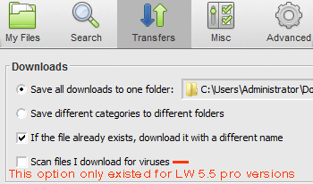 BTW only the 5.5 Pro versions had the disable AV Scan files after download option. LPE does not have this option.