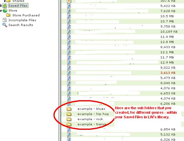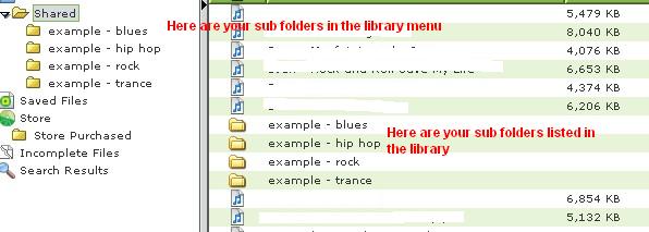 If you want to add sub folders for genre within your shared folder, go to LW's library. Expand Shared Files by clicking on the little arrow beside it. Now highlight Shared & then click Explore... your shared folder should open.