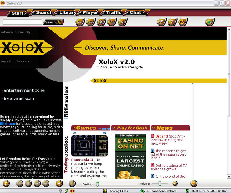 Xolox is pronounced "Zo-lox",and the commpany behind it was Xolox B.V. Xolox 2.0.53.229 (GnucDNA 1.0.2.6) is a GnucDNA based P2P application...It's now discontiniued, and not developt enny more...In fact Xolox 2.0 can not be downloaded from the internet as before, because they used only smart installers for all Xolox 2.0 versions and up!A smart installer is a small installer pack which download the files from a server and intall it on the users computer...Now the server is gone and the smart installer does not work enny more!Xolox 2.0 is a Morpheus 4.0 clone, after all it's build from the Morpheus 4.0 source code...The web site (http://www.xolox.nl) is gone as well,but i know they tryed to sell it with the Domain!I was able to make this Xolox 2.0 installer from the main XoloxEXE and two Morpheus builds...I give no warranty how it will work for you, it's a kind of "as is" release from me...I still find it use full, and i sure did miss it!I put this out for download because of two reasons...1 For those who once up a time did like it...2 For those who never did have a chance to try it out...I would not say it's good or bad P2P apps, but it still get the job done!The old MLdonkey core is removed and replaced with a newer one...Because of it was old and out dated as it can be...Xolox can still be used for Gnutella/G2/ NeoNet and Edonkey hopfully...you like to try it, please feel free to do so!