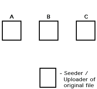 Here is a simple example of how pieces of a file are sent to different downloaders. In this example, there is one seeder and three leechers (A, B and C.) The seeder sends piece #1 to downloader "A", then sends piece #2 to "B", piece #3 to "C", then piece #4 to "A", etc. The leechers simultaneously share the different pieces of the same file with each other. This is a very simplified way to explain how it works and how important partial file sharing is to the sharing protocol and process. In reality, pieces are broken into smaller parts still.